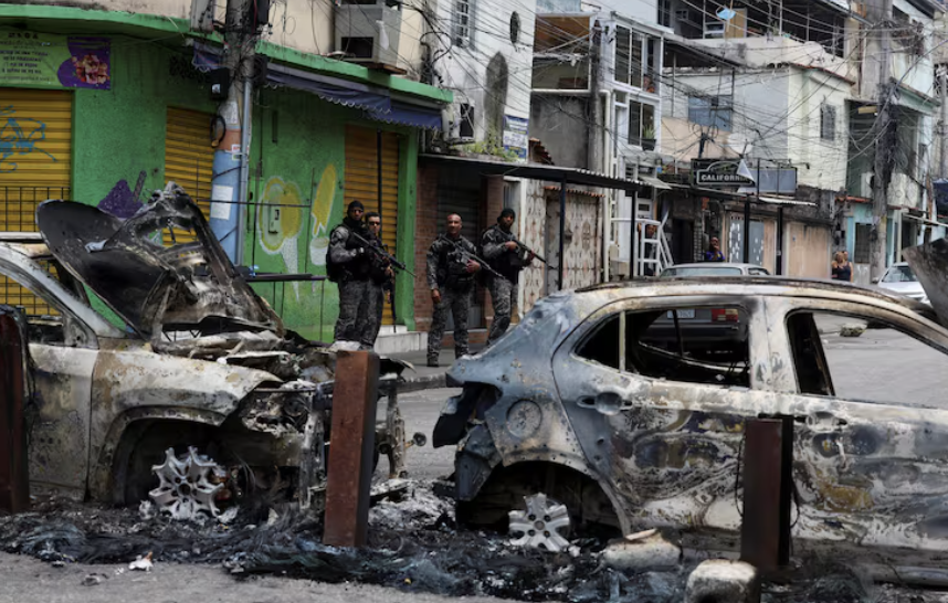 El megaoperativo contra la organización Comando Vermelho se realizó en dos favelas. Los criminales resistieron con drones artillados y robaron más de 50 micros para usarlos como barricadas. Hay más de 100 detenidos.